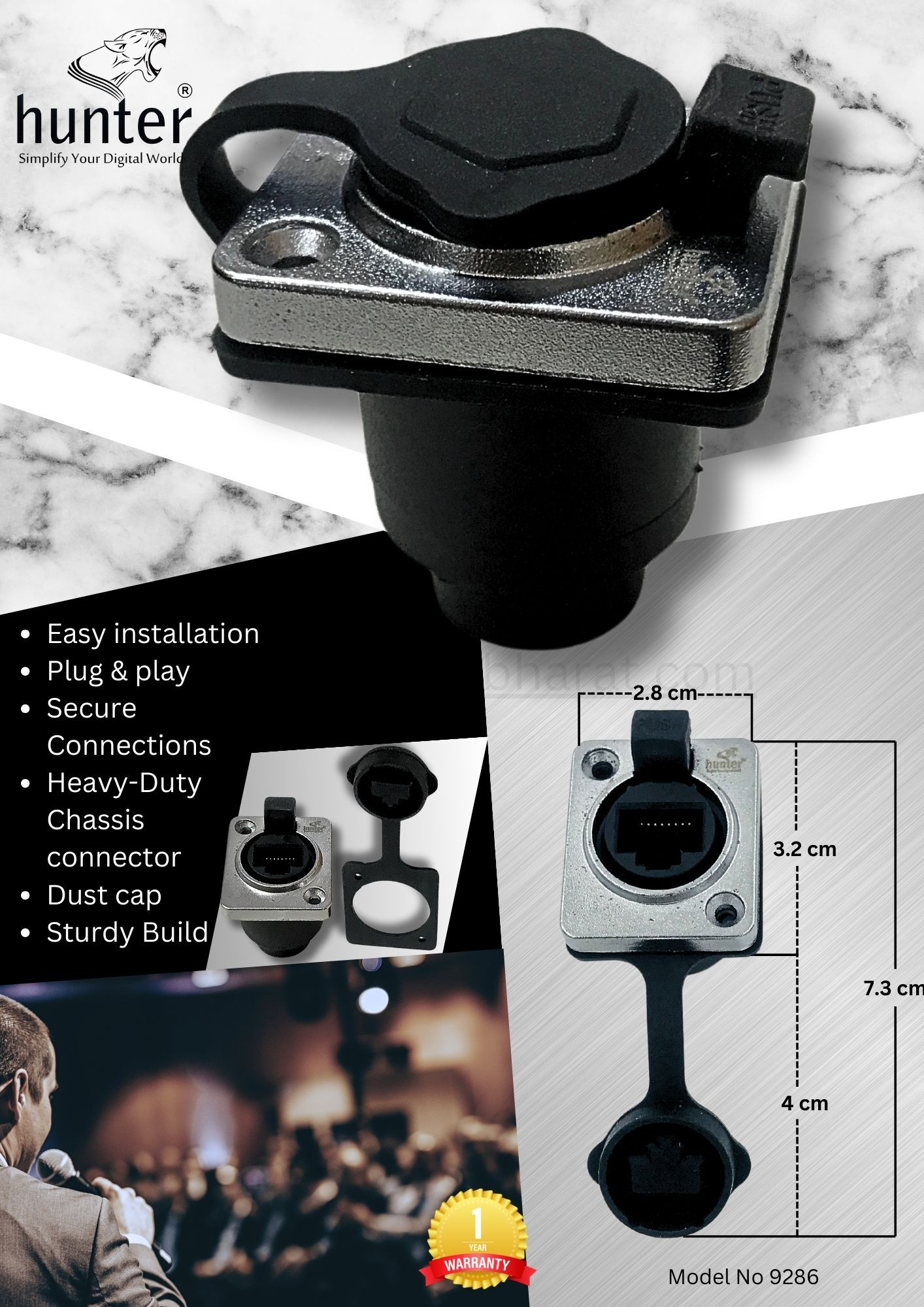 9286-HUH-RJ45FSJL Hunter RJ45 Straight Jack with Lock Heavy Duty Chassis Connector epitomizes robustness and reliability in networking solutions, specifically crafted for the rigors of heavy-duty applications. Boasting a straight jack with an integrated locking mechanism, this chassis connector ensures a steadfast and secure link for Ethernet cables. Weighing in at 23 grams, its heavy-duty construction guarantees durability, rendering it apt for industrial and professional environments where unfaltering network connectivity is paramount. Compatible with standard RJ45 cables, it seamlessly integrates into existing network infrastructures. The incorporated locking mechanism not only fortifies security but also prevents inadvertent disconnections, thereby guaranteeing uninterrupted network communication. Whether deployed in manufacturing, automation, or other demanding industrial settings, the 9286-HUH-RJ45FSJL offers unparalleled performance and resilience, making it the quintessential choice for critical networking requirements.